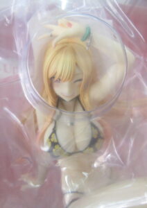 ボディラインの造形も非常に滑らかで、1/7スケールならではの情報量が活かされています。健康的なプロポーションを強調しつつも、いやらしさを感じさせない上品な仕上がりが特徴です。水着の質感やシワの入り方、肌のグラデーション塗装など細部へのこだわりが随所に見られ、光の当たり方によって印象が変化する点も魅力となっています。