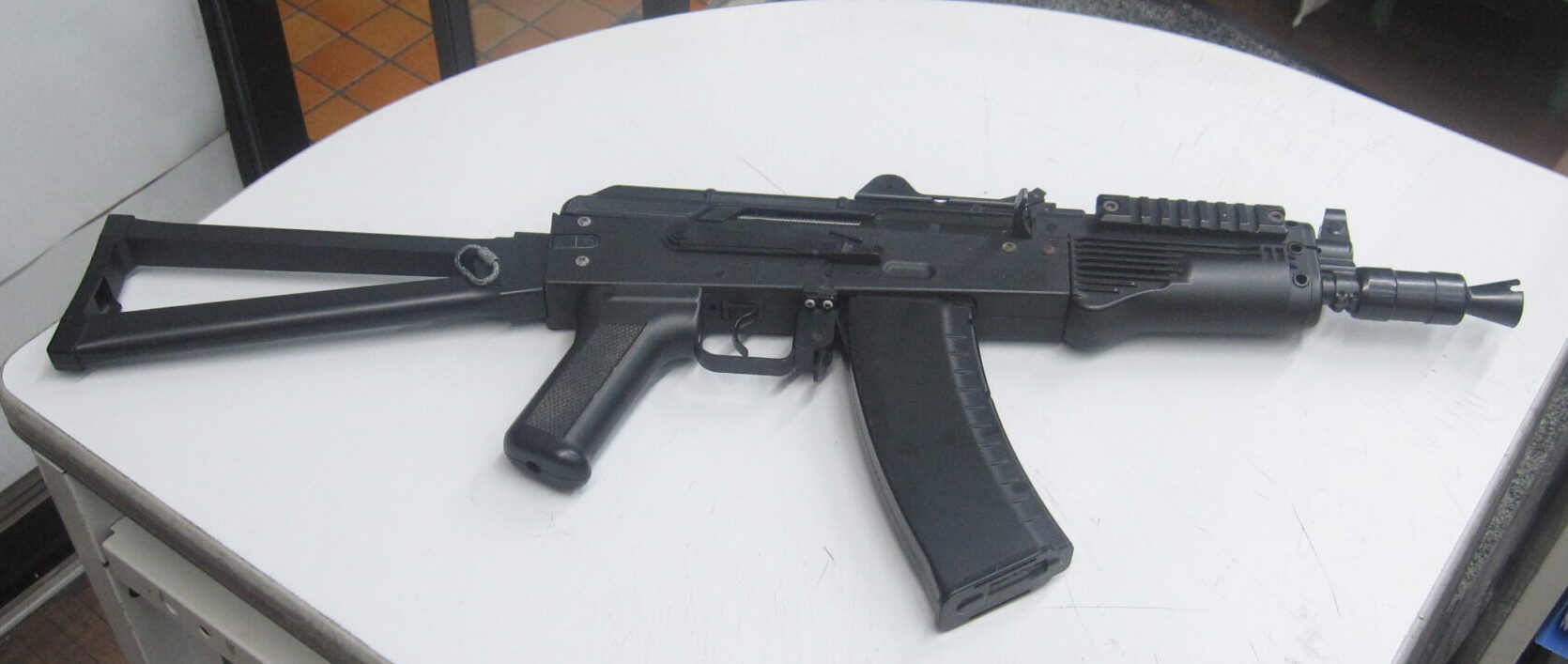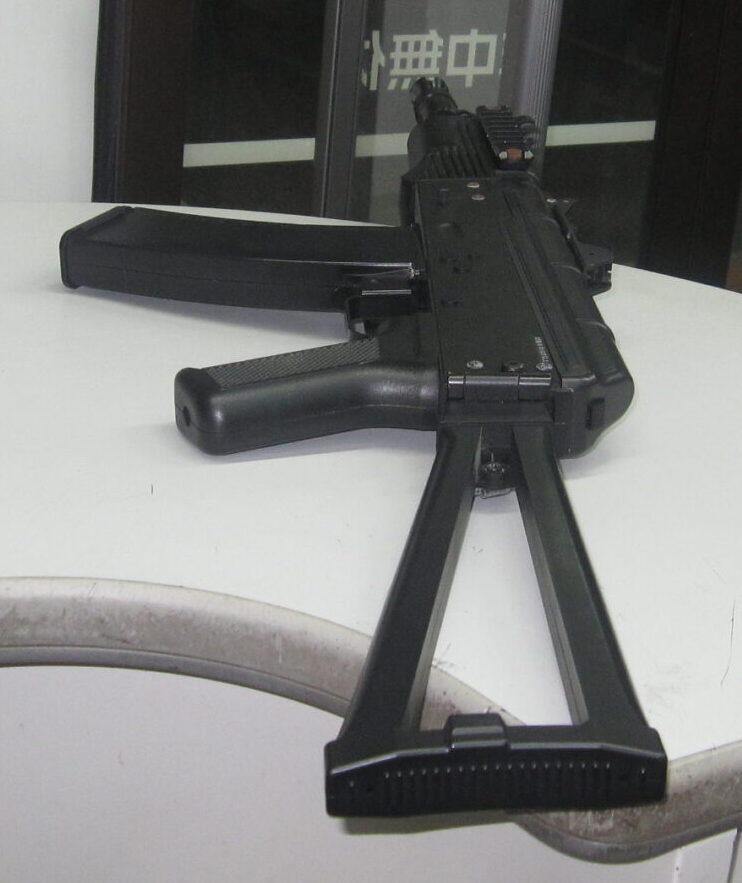WE-Tech(WE)AKS-74U ガスブローバックは、旧ソ連の短縮型アサルトライフルAKS-74U、通称「クリンコフ」をモデルにしたガスブローバックエアガンです。最大の特徴は全長を抑えたコンパクトな設計と、実銃同様の三角形フォールディングストックで、狭い場所でも扱いやすい取り回しの良さを再現しています。