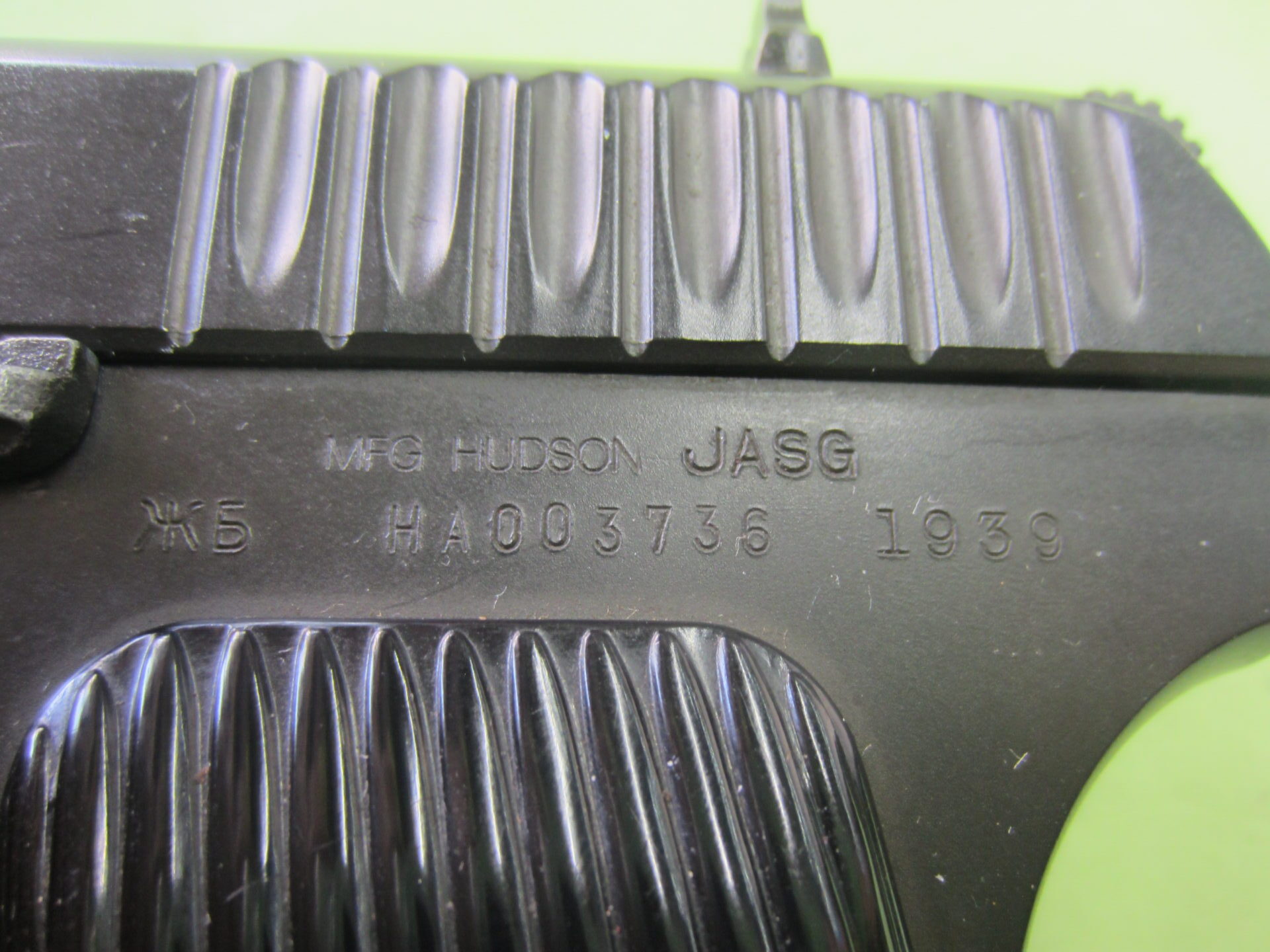 ガスガンの刻印部、JASGマークで安心・安全・合法を表しています